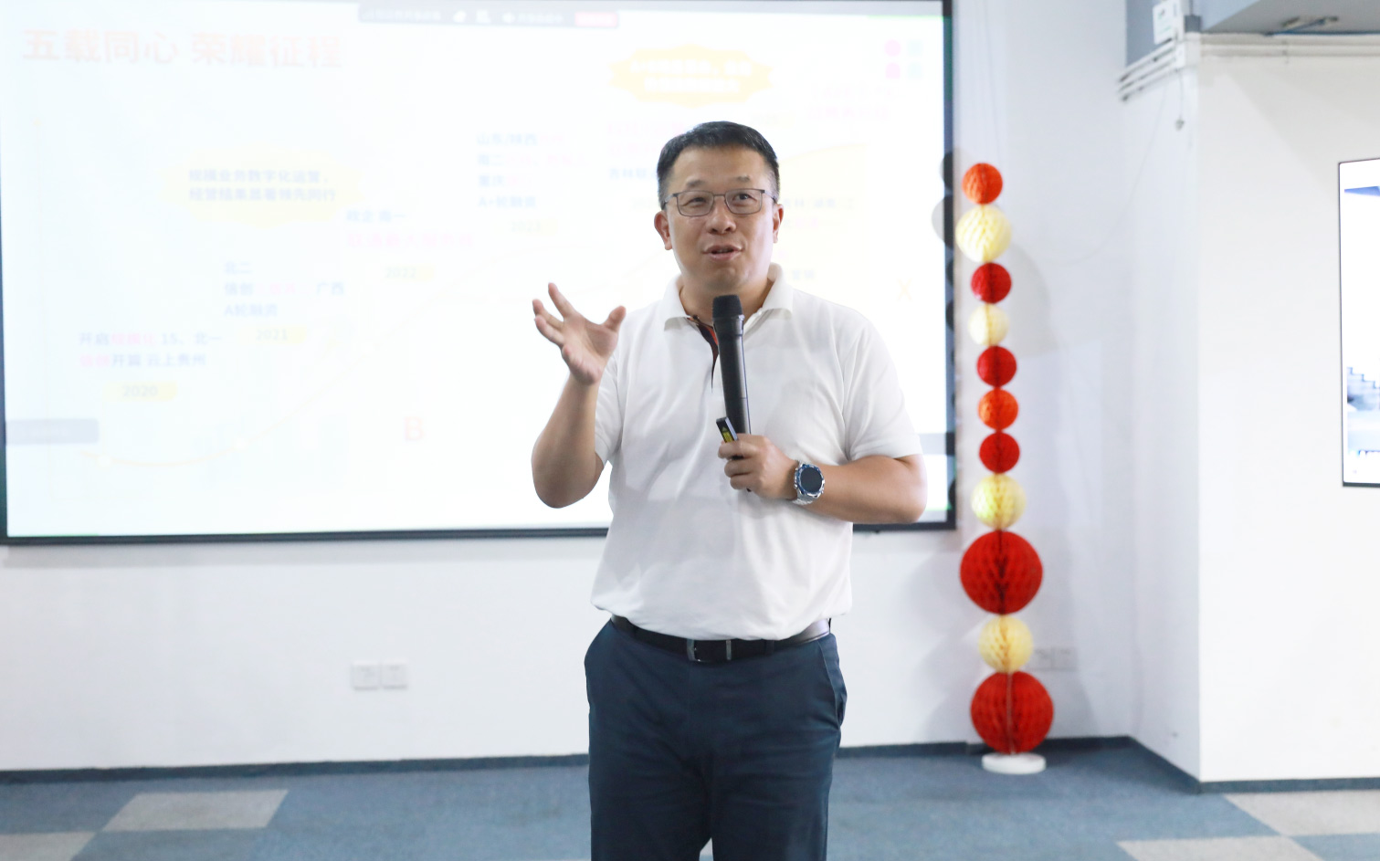 其时光的指针定格在五周年这个主要节点,,,AG8亚洲国际各人庭齐聚一堂,,, “与君共拓,,,星瀚无涯——五载同心?温暖绽放” 为主题的AG8亚洲国际五周年司庆中,,,线上线下的同伴们跨越空间,,,在温馨气氛里,,,一起回望五年征途,,,也一同描绘 “星瀚无涯” 的新蓝图。。。