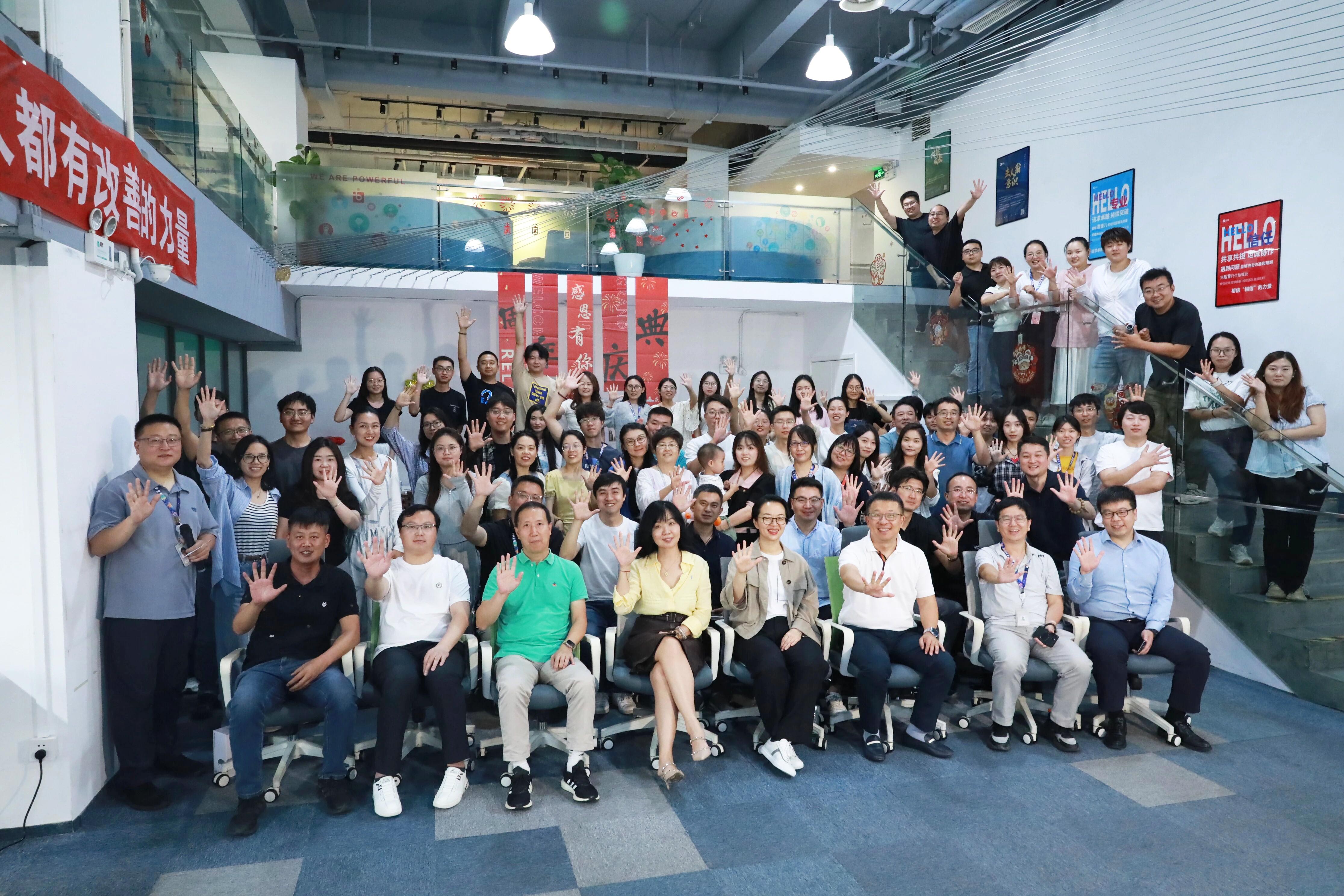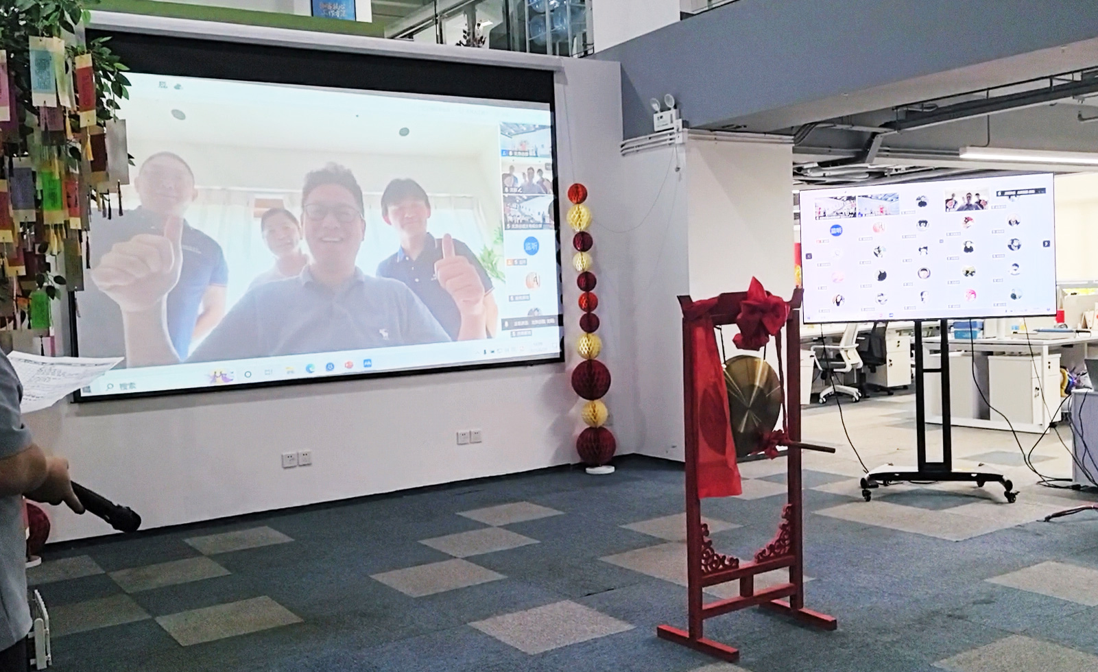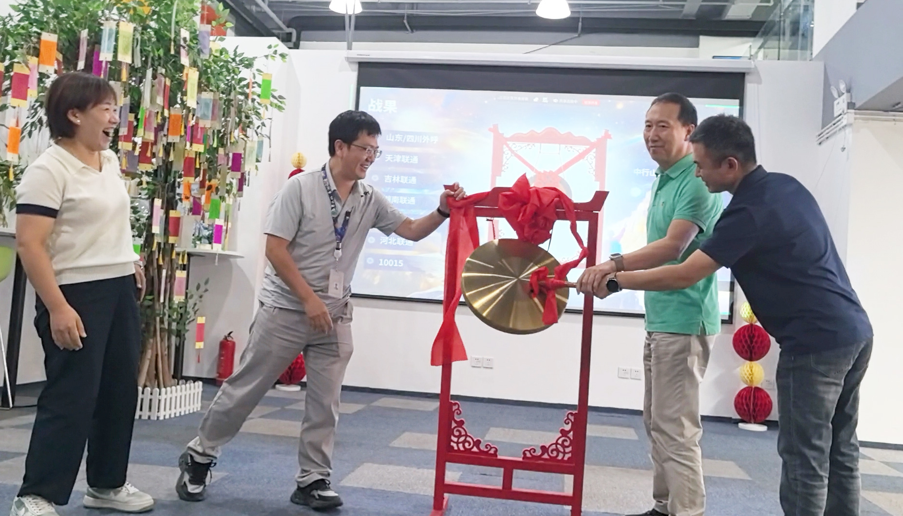 熟悉的敲锣古板如约回归!项目功勋成员配合敲响庆功锣,,,锣声里是对过往的喝彩,,,更是对未来的期许。。。合影定格优美,,,高管与部分认真人共切五周年蛋糕,,,为盛会画上圆满句号。。。
